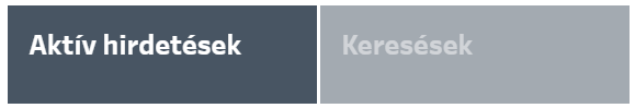 A felület tetején két nagy szürke téglalapot látsz, ezek a modulok. Ezekre kattintva választhatod ki, hogy aktív hirdetésekre, vagy ingatlankeresésekre vonatkozó adatokat szeretnél látni. (Amelyiket kiválasztottad és aktív, az a sötétebbik szürke fehér betűkkel, a másik halványszürke, szürke betűkkel).