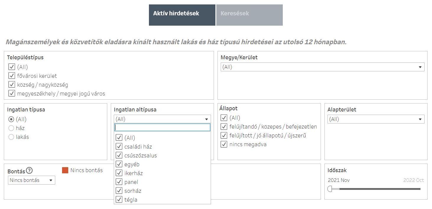 Az Ingatlanpiaci Statisztikák kínálati oldalát több szempont alapján lehet áttekinteni
