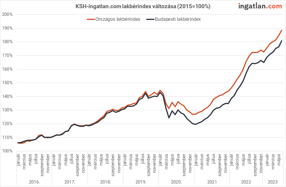 Az ingatlan.com szakértője szerint ez azt is jelenti, hogy a bérbeadók díjemelései nem tudtak lépést tartani az inflációval, ezért a bérleti díjaknak egyelőre inflációcsökkentő hatása volt a gazdaságra. “Hosszabb távon viszont pont emiatt további albérletár-drágulásra lehet számítani.” – tette hozzá Balogh László.