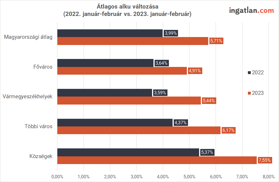 “A keresletcsökkenés miatt mindenütt jobb helyzetbe kerültek a vásárlók az egy évvel korábbihoz képest. Országos átlagban már közel 6 százalékos alkura van esélyük a vevőjelölteknek, szemben a tavaly év eleji kevesebb mint 4 százalékos árengedménnyel. Minden településtípust nézve javult a vásárlók alkupozíciója, a fővárosban, a vármegyeszékhelyeken és vármegyei jogú városokban kisebb mértékben. Egy 5-6 százalékos sikeres alku egy 50-60 millió forintos kezdeti áron piacra dobott lakásnál 2-3,6 millió forintos megtakarítást jelenthez” – mondta Balogh László, az ingatlan.com vezető gazdasági szakértője.