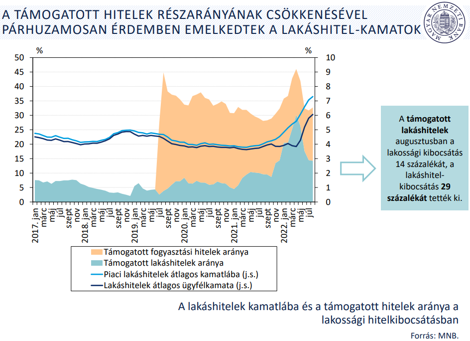 Nagy Tamás külön kiemelte, hogy a COVID utáni felpattanást, valamint az elért eredményeket gyakorlatilag elgáncsolták az ismert nehézségek (háború, infláció, szigorodó kamatkörnyezet). A lakáspiac és a hitelezés aktuálisan érzékelhető fordulópontját az MNB pénzügyi rendszer elemzésért felelős igazgatója azzal szemléltette, miszerint 2022-ben éves szinten közel 20 százalékkal esett vissza a nyári hónapok adásvételeinek száma és az újonnan kihelyezett lakáshitel-volumen.