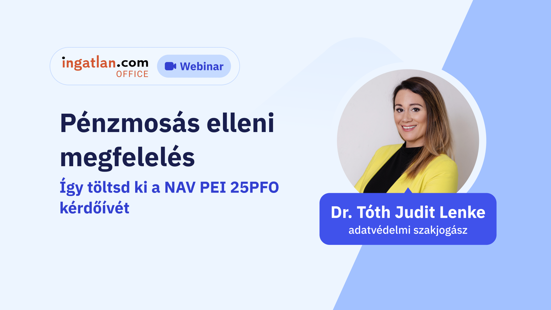 2026. február 16-án délelőtt 11 órától Balogh László, az ingatlan.com vezető gazdasági szakértője egy élő, online webinar során beszélget Dr. Tóth Judit Lenke adatvédelmi szakjogásszal, a SmartFill Legal alapítójával. A beszélgetés során a szakértők átveszik a 101 elemből álló kérdéssor legfontosabb pontjait, segítve ezzel a kitöltést az érintett közvetítőknek.