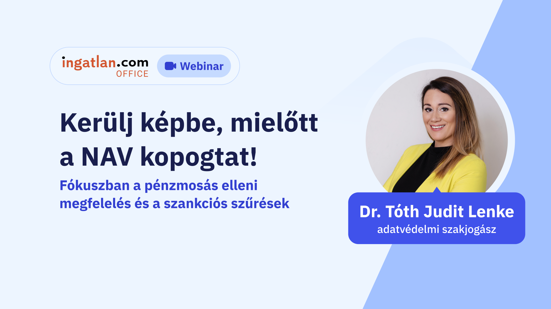 Az ingatlan.com által megrendezett Office Webinar legutóbbi vendége dr. Tóth Judit Lenke volt, adatvédelmi és adatbiztonsági szakjogász. A szakértő 2018 óta foglalkozik adatvédelemmel és pénzmosás elleni megfeleltetéssel, ő a SmartFill Legal alapítója, valamint jelenleg a Pécsi Tudományegyetemen PhD kutatójaként is tevékenykedik.